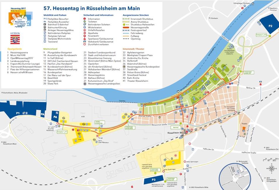Angesichts des derzeitigen Zustands der Rüsselsheimer Innenstadt fragen wir uns allerdings, was ausgerechnet für Rüsselsheim als Austragungsort des Landesfests gesprochen hat. Nach Jahrzehnten des Niedergangs der Innenstadt gibt es heute in Teilbereichen durchaus wieder Fortschritt. So wird für die Karstadt-Ruine und ihre Umgebung ein städtebaulicher Wettbewerb ausgeschrieben, um die beste Lösung für eine Überplanung zu finden. Auf der Brache zwischen Rathaus und Maindamm wird ein Hotel mit Gasthausbrauerei gebaut. Von der erhöhten Terrasse aus kann man bald den Blick auf den Main bei einem kühlen Bier genießen. Diese Entwicklung in Teilbereichen der Innenstadt ist Oberbürgermeister Burghardt zu verdanken. Bis die Stadtmitte wieder eine Zentrumsfunktion als Treffpunkt der Bürger wahrnehmen kann, muss allerdings noch vieles hinzukommen. Eigentlich wäre der richtige Zeitpunkt für einen Hessentag in Rüsselsheim erst, wenn sichtbare Erfolge einer Revitalisierung der Innenstadt zu präsentieren sind. Die Wahl Rüsselsheims als Austragungsort 2017 basiert nicht auf einer aktuellen Beispielfunktion Rüsselsheims. Sie entspringt vielmehr politischem Kalkül. Der Oberbürgermeister möchte am 24. September wiedergewählt werden und kalkuliert, durch die Feststimmung zum Sieg getragen zu werden. Dies ist legitim aber wenig elegant.