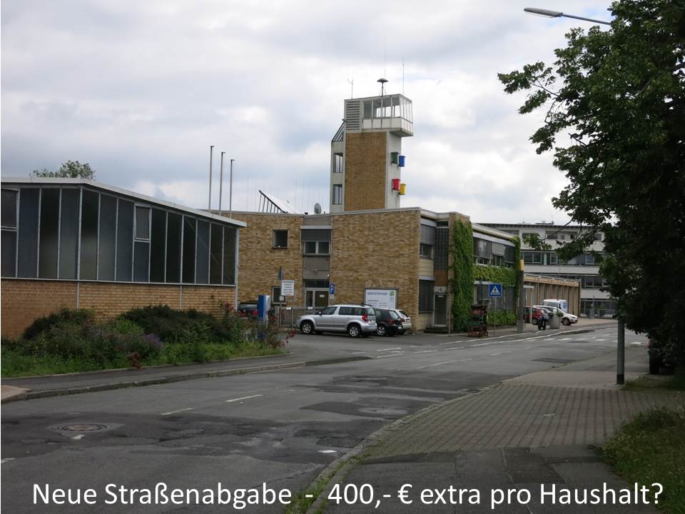 Am Dienstag (30. Mai) kommt es in einer Sondersitzung des Parlaments zur vierten Lesung der Straßenbeitrags-Satzung. Die Sondersitzung wurde eilig einberufen, da die Regierungspräsidentin die Einführung einer Straßenabgabe angesichts des Rüsselsheimer Defizits ultimativ gefordert hat. Sollten sich die drei Parteien bis Dienstag abgesprochen haben, werden sie sich durchsetzen und die Schuld der Regierungspräsidentin anlasten. Es droht eine zusätzliche Abgabe zu Lasten des Bürgers, die etwa so hoch ausfallen dürfte wie die bereits verdoppelte Grundsteuer. Rechnen wir einmal mit einem Volumen von 20 Millionen pro Jahr, das wir auf die 27.000 beitragspflichtigen Haushalte in Rüsselsheim verteilen, so kommen wir auf eine durchschnittliche Belastung eines Haushalts von 740,- € pro Jahr zusätzlich zu den normalen Steuern und Abgaben. Wer hat so viel Geld übrig – und das jedes Jahr? Dies dürfte einige private Haushalte in den Konkurs stürzen. Die andern müssen sparen für die Straße.